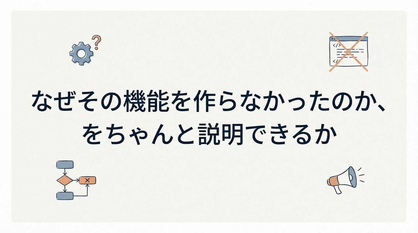 作らない判断をすることで、他の開発へのリソースの投下できるようになったり、プロダクトとしての一貫性など何かしら得るものがあるはずです。